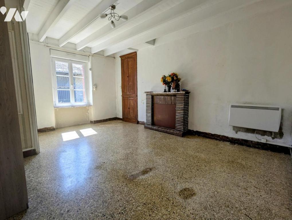 Maison de charme,(surface habitable environ 73 m2), avec façade en pierre et briques, située en plein cœur de PERCY, nécessitant des travaux, comprenant :